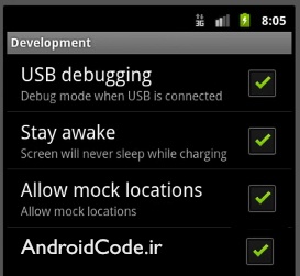 گزینهی سوم یعنی Allow Mock Locations زمانی به درد میخوره که تو برنامتون از امکانات جیپیاس (مکان یاب) استفاده کرده باشید. اگه این گزینه فعال نشده باشه اجازه نمیده برای تست کردن برنامتون از مکانهای جعلی استفاده کنید. مثلا احتیاج دارید ببینید تو یه شهر دیگه اون قسمتی از برنامتون که مربوط به مکان فرد میشه، چطور عمل میکنه. میتونید با فعال کردن این گزینه تو شهرخودتون باشید ولی جیپیاس نشون بده یه شهر دیگه اید تا اینطوری برنامتون رو امتحان کنید.
